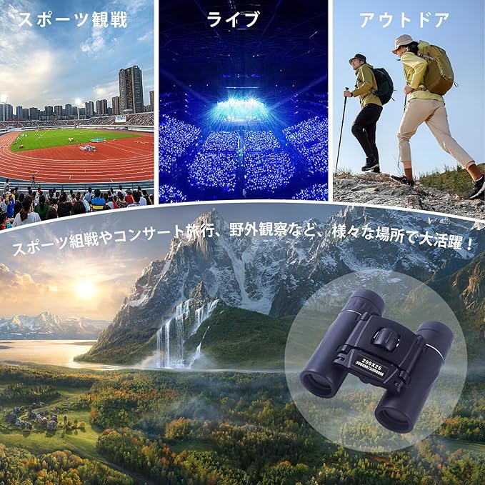 【様々な場合で大活躍】 野球・サッカー等の大型スタジアムでのスポーツ観戦・旅行・大型会場のオペラグラス コンサート・動物園・アウトドア等いつでも何処にでも気軽に持ち歩き新たな発見が期待出来ます。