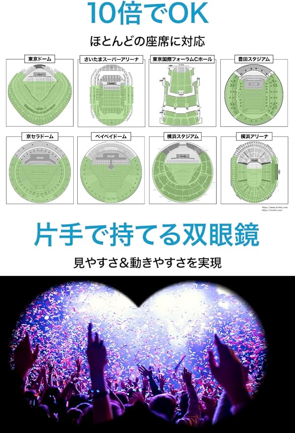 ✅【推し活に最適な10倍! 】\せっかく行くなら大きく見ようよ!/ライブに最適な10倍双眼鏡。アリーナ後方〜スタンド席からでも推しの顔がクリアに見える!動きのある対象もはっきりとらえるから、ライブでどの瞬間の推しも見逃さない。