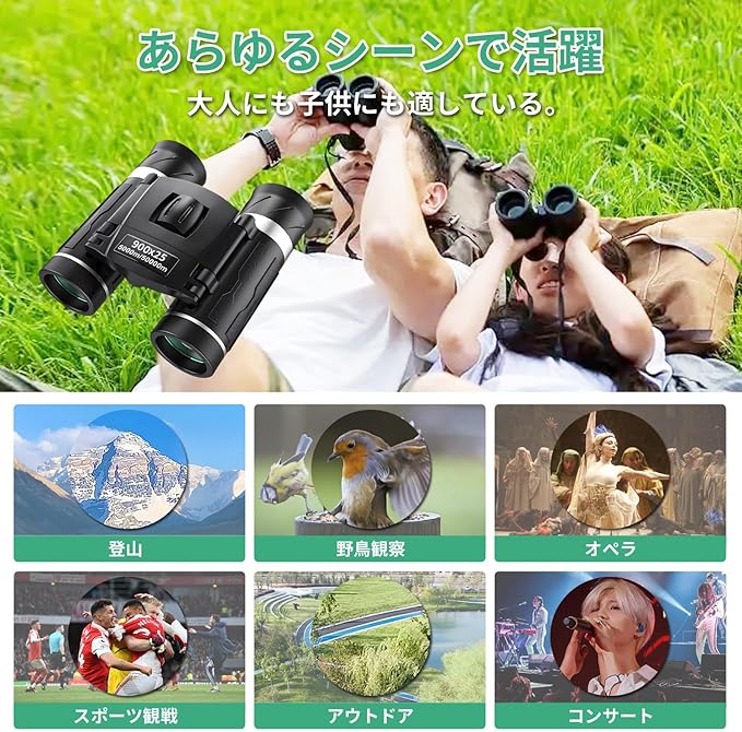 双眼鏡 ライブ用 20倍 オペラグラス 観劇 【BAK4光学プリズム&FMC多層コーティング】双眼鏡 防振 超軽量 小型 生活防水 目幅調整可能 お子様や女性に最適 ライブ/オペラ/スポーツ観戦用/コンサート用/登山/旅行/アウトドア/野鳥観察 ネックストラップ 収納バッグ付き 日本語説明書