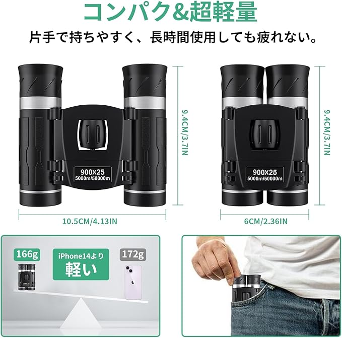 【コンパクト&超軽量&調整可能】オペラグラス ライブ用は軽量設計で、重さはわずか166g、片手で簡単に持つことができ、長時間の使用でも疲れを感じさせません。目の幅を自由に調節できるので、女性や子供にも適している。折りたたむとさらにコンパクトになり、持ち運びも簡単。ネックストラップ付きで、外出時に首から下げることもできます。スポーツ観戦や野鳥観察などに最適です。
