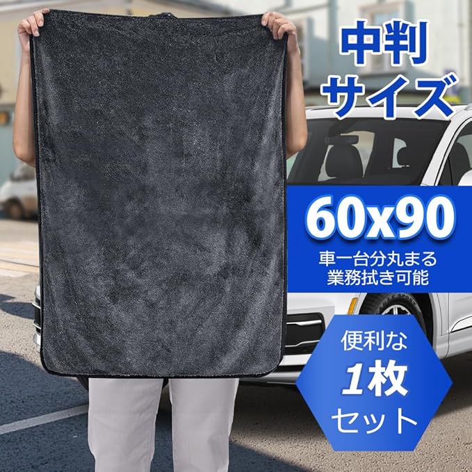 洗車用品 拭き上げ用 マイクロファイバークロス 大判 拭き上げクロス プレミアムマイクロファイバー 超吸水 洗車タオル (1-02:グレー ブラック縁 60x90 1枚入)