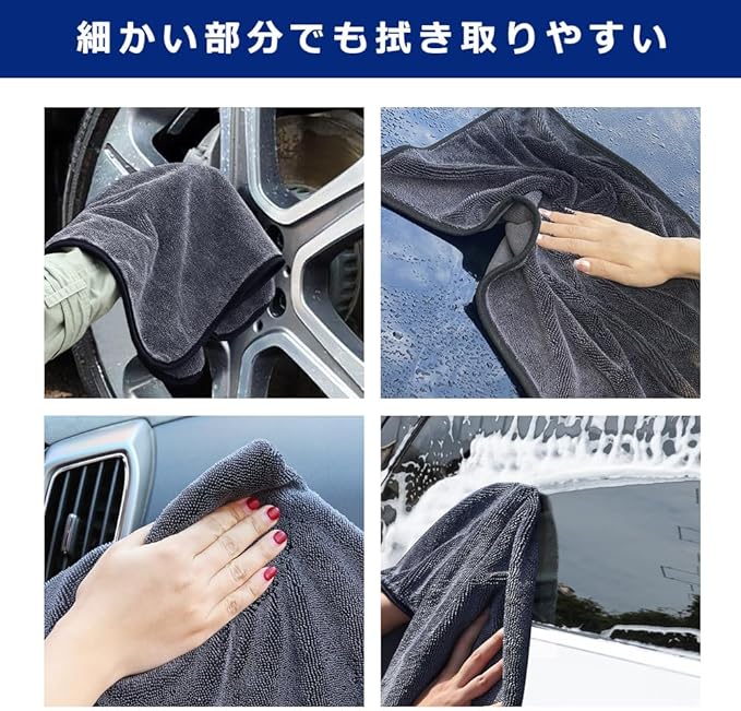 【洗車 タオル&素材】洗車タオル素材ングツイストマイクロファイバーで織られたタオル、繊維が細かいため水分をスッと吸収できます。投げかぶせて軽く引っ張る!車体、バイク、ガラス、プラスチックなどの表面をさっと拭くだけで水分を速やかに拭き取ることが可能です,ふんわりなめらかタッチで汚れを拭き取り、車や家具に傷を付けません。