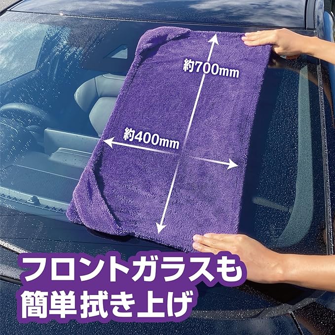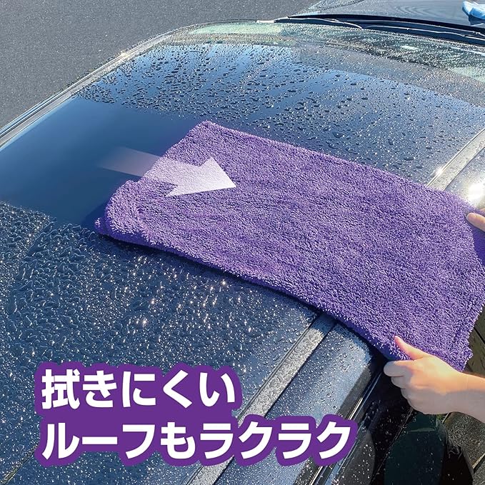 ボンネットやルーフ、フロントガラスにクロスを置いて引くだけでOK。ボリュームたっぷりの超極細繊維により、水滴を残さず拭き上げます(約1.4L)。