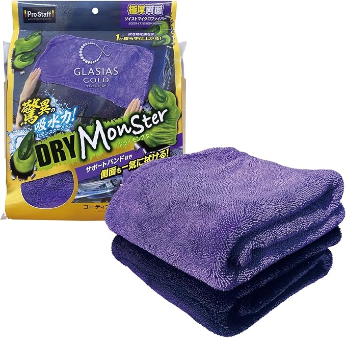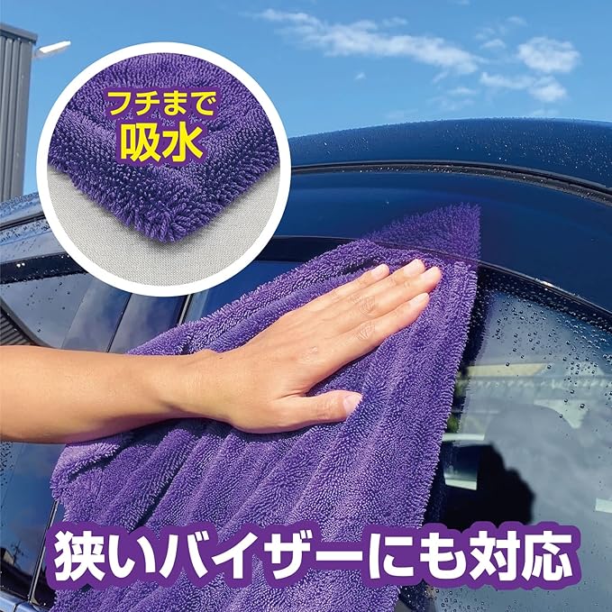 極厚両面ツイストマイクロファイバー仕様の、洗車後の水滴拭き上げに最適な吸水用クロス