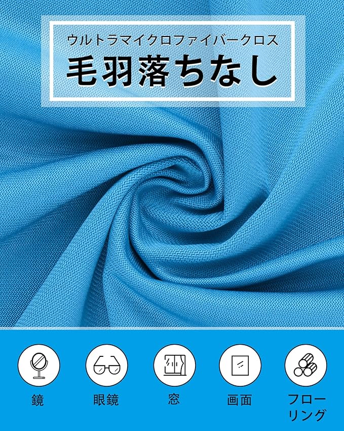 汚れや水分を一度で拭き取り:マイクロファイバーの細かい繊維が、微細な汚れや水分を素早く吸収し、残らずしっかり拭き取ります。