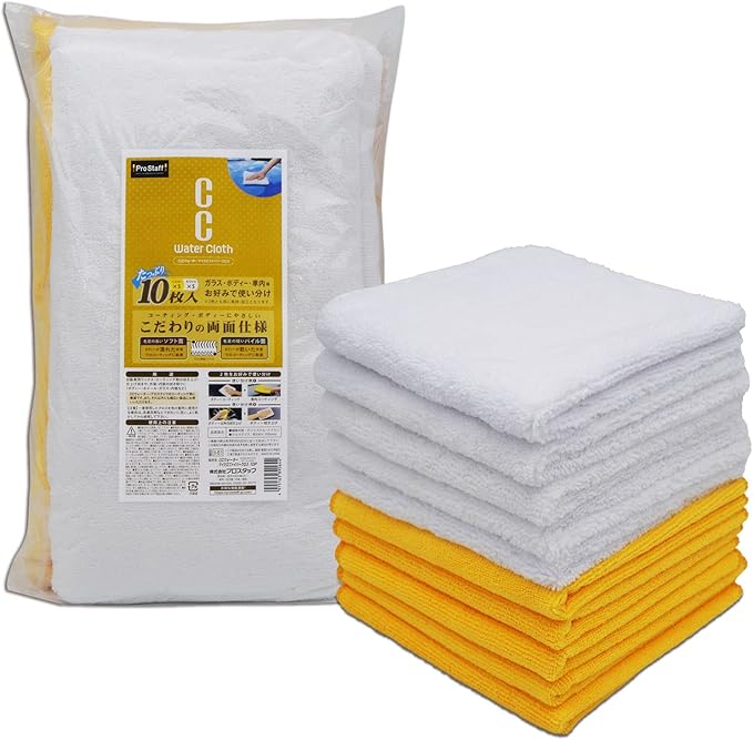プロスタッフ 洗車用品 拭き取りクロス CCウォーター マイクロファイバークロス 10枚入り X-61 白色 黄色