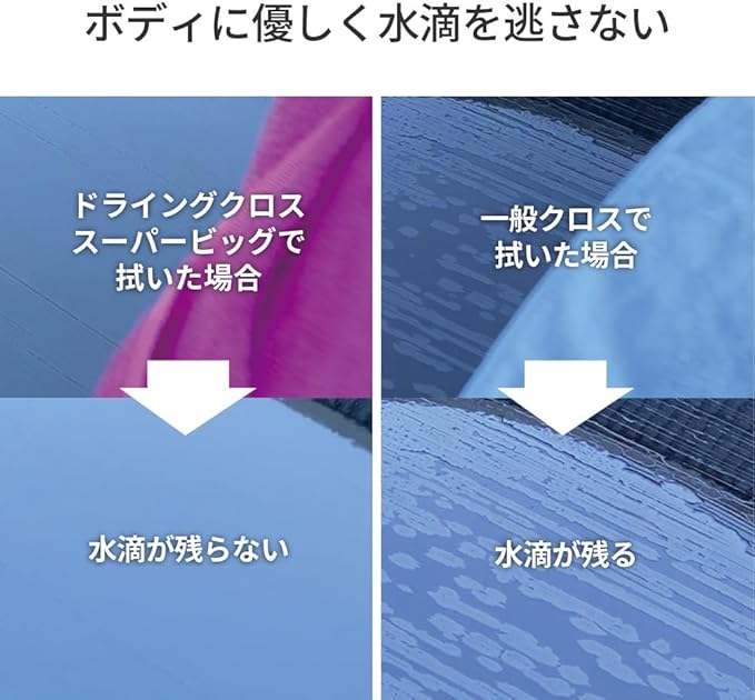バスタオルサイズでボンネットやルーフなどを一気に吸水で作業効率UP