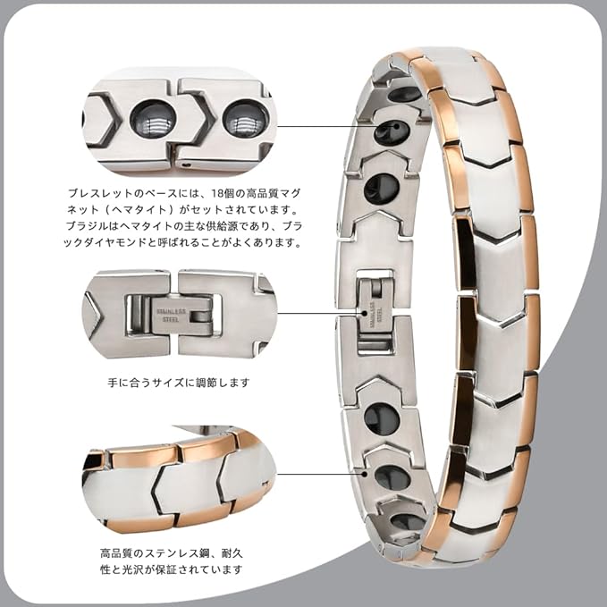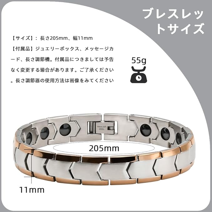 【サイズ調整可能】:磁気ブレスレットのパッケージにはサイズ調整ツールが含まれています。もちろん、自宅で簡単にサイズを調整できます。 (推奨:自分でサイズを調整できない場合は、近くの時計店に行ってください)