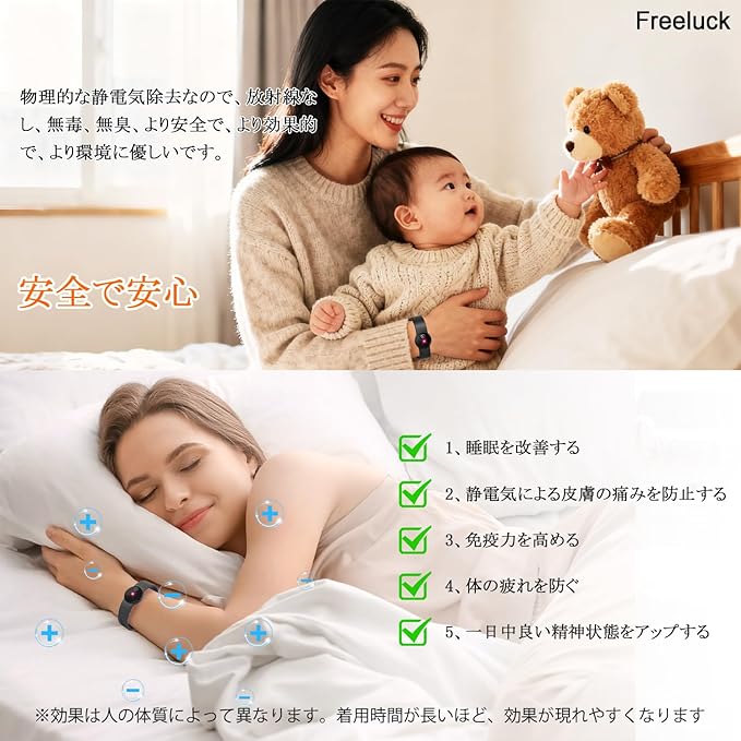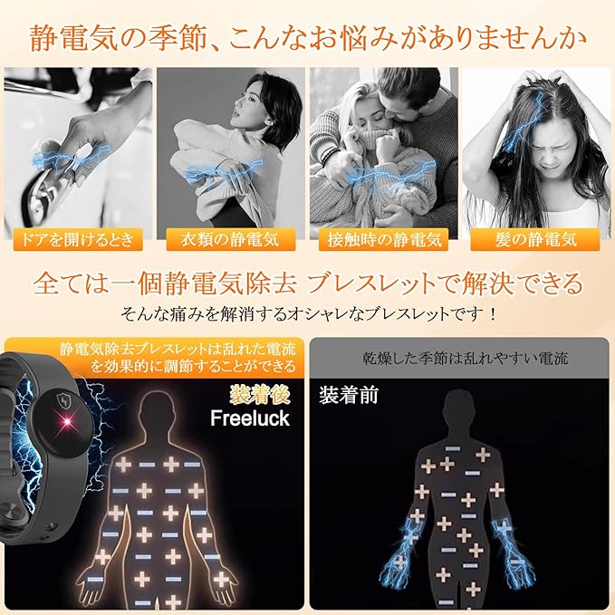⚡【2025冬業界Newモデル&Freeluck独自開発静電気除去 ブレスレット】乾燥した天気に悩んだことはありますか?静電気に刺激されてパチパチ痛む。Freeluck独自開発の静電気除去ブレスレットは、電極チップを肌に密着させ、静電気を吸収して特殊な技術加工を施した光源点に放出することで放電を吸収し、空気中に放電することで、完全に静電気を除去!