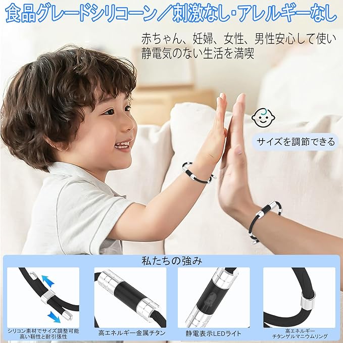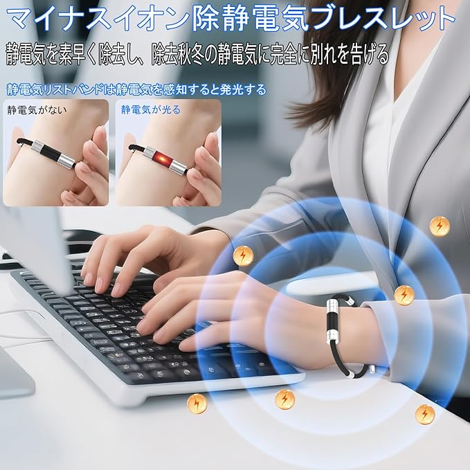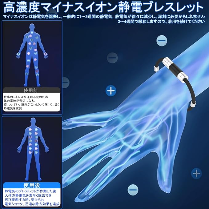 【簡単調整可能】全長約22cm、調整可能。伸縮性と柔軟性に優れています、着用の心配はありません。使いやすい:静電気防止リストバンドを装着する過程で、人体の静電気は持続的に感知され、に放出され、睡眠の質を改善し、身体の性能を高め、を減らす。カジュアルに着けてもカッコイイ、シンプルでスタイリッシュなデザインが。