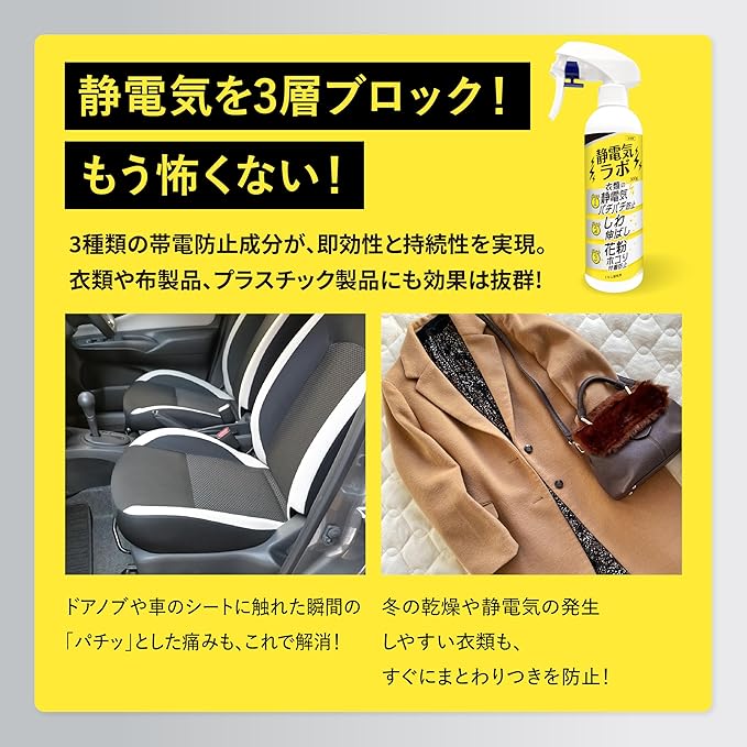 【静電気ゼロ革命】静電気ラボ 静電気・花粉防止スプレー 静電気除去 花粉 300g 静電気防止グッズ 静電気防止スプレー 静電気防止 静電気放電グッズ 静電気対策グッズ 皺伸ばし プロ用