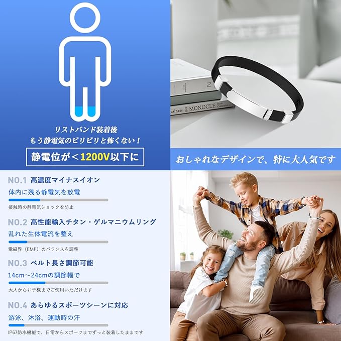 ⚡【耐久性と防水性】ご注意:寒冷で乾燥した天候時にセーターやニットを着用すると、多量の静電気が発生する可能性があります。この場合、ブレスレットが短時間で如此大量の静電気を全て除去しきれないため、ビリッとする感覚を感じることがあります。