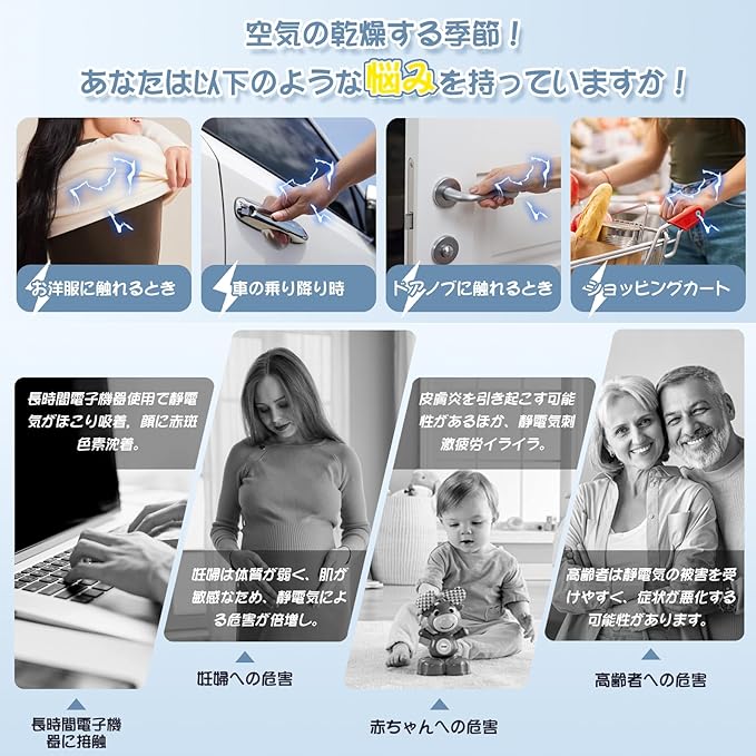 【四季使用可&贈り物に最適】シンプルでおしゃれなデザインで、男性も女性も簡単に着こなせます。静電気防止用品であると同時に、日常のアクセサリーとしても活躍。季節の制約を受けず、一年中どの季節でも着用可!秋冬に静電気で困ったことがない人いるんでしょうか?このブレスレットを家族、友達、同僚へプレゼントすると、きっと人気の良い贈り物になります!