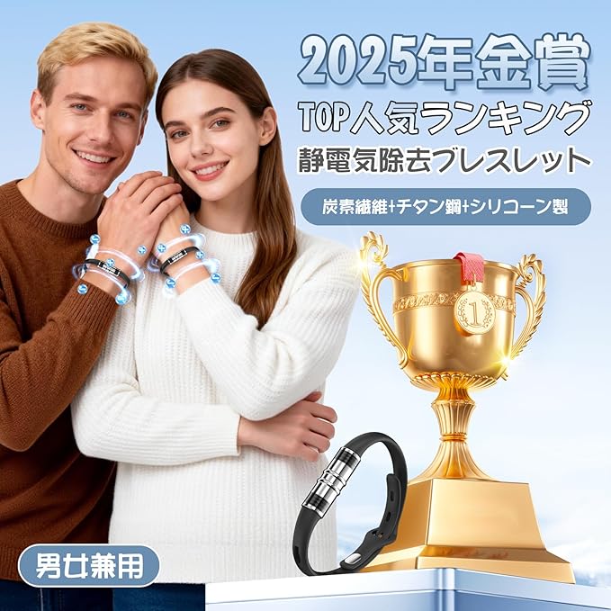 [Onefun] 静電気除去 ブレスレット【2025年金賞 新しいアップグレード】静電気軽減ブレス おしゃれ 炭素繊維・チタン鋼・シリコーン素材 静電気防止グッズ 防水 14~22cm調整可能 スポーツ シリコンブレスレット 静電気対策 男女兼用 秋冬乾燥季節対応