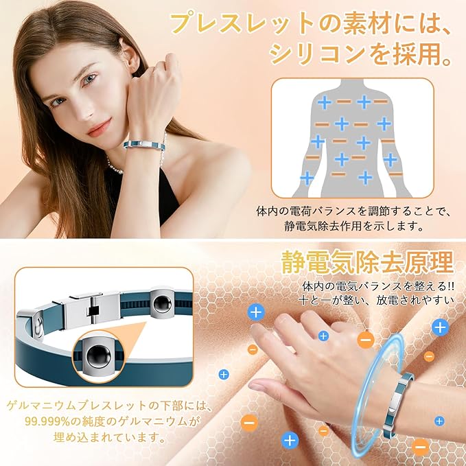 [Sungale] 静電気除去 ブレスレット【2025年アップグレード版】 磁気 スポーツ シリコンブレスレット 防水 静電気防止グッズ 静電気軽減 サイズ調整可能 Notウォレットチェーン