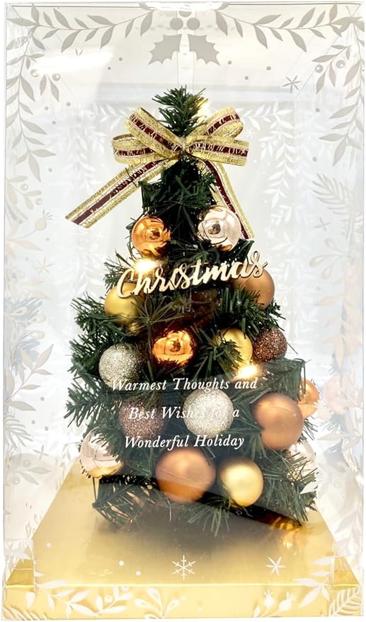 クリスマスツリー 卓上 装飾付き ミニクリスマスツリー LED イルミネーションライト オーナメント付き おしゃれ かわいい 人工 (28㎝(ゴールド))