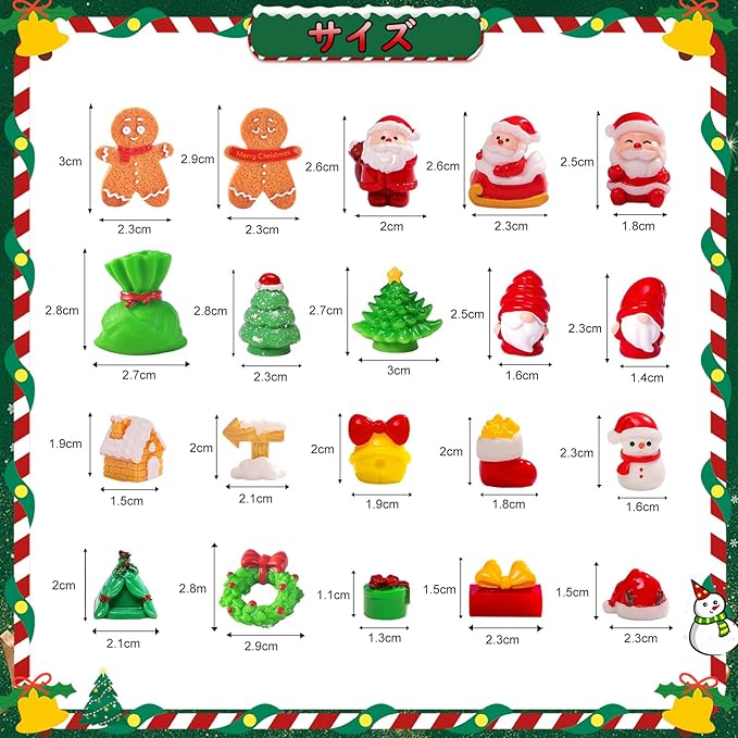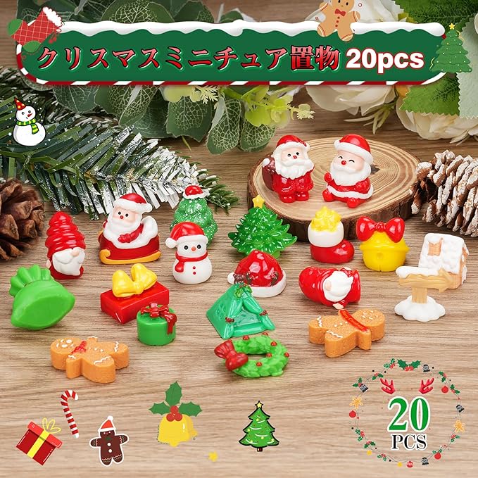 クリスマス ミニチュア 置物 ミニクリスマスオーナメント 20点セット 樹脂 飾り 可愛い 手芸用品 卓上 小物 アクセサリー サンタ 雪だるま ツリー 手作りキット