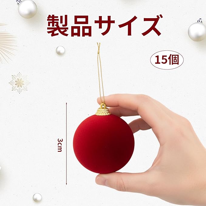 15個セットクリスマス オーナメント クリスマスツリー 飾り レッドベルベット ボール吧 ツリー用 ツリーフロックオーナメントボール 家族 ホリデー ウェディングパーティー 吊り下げデコレーション(3cm)