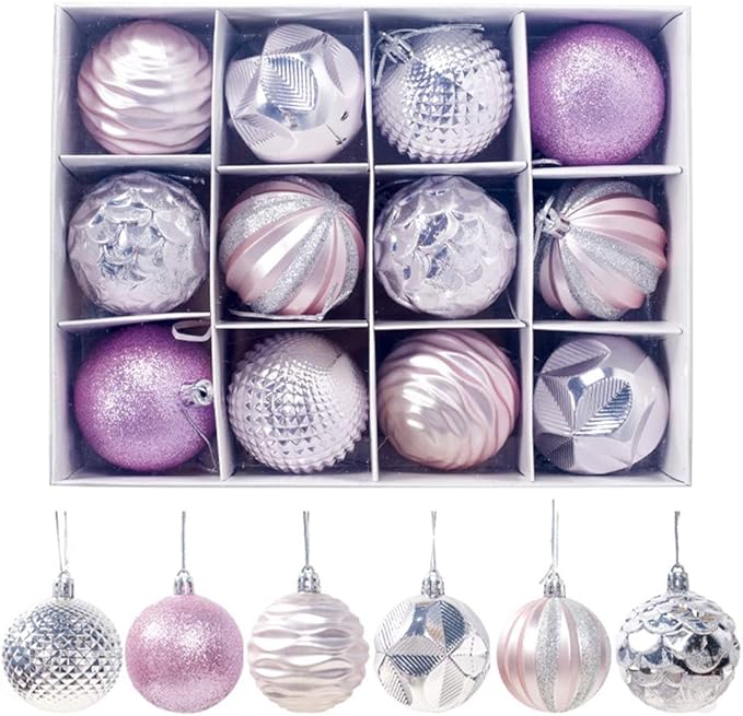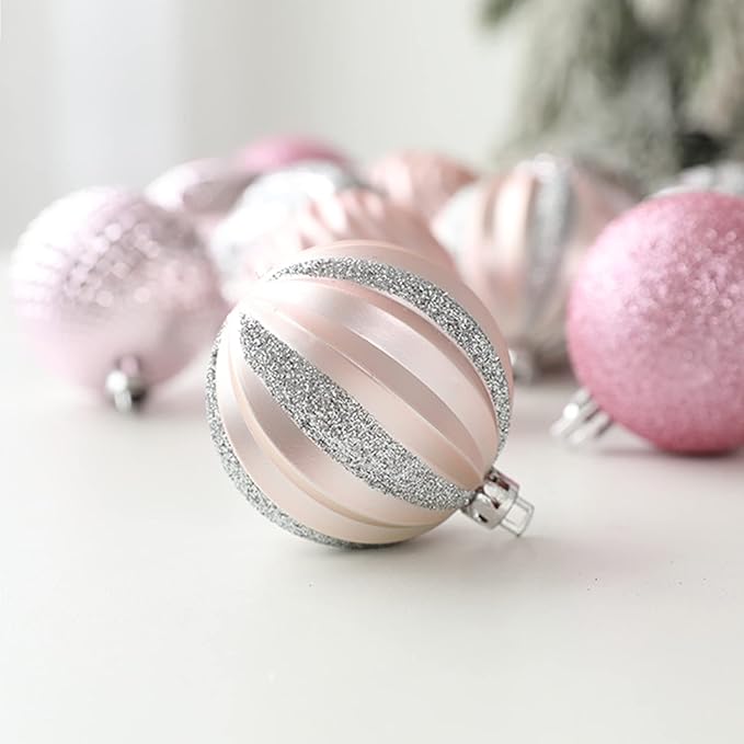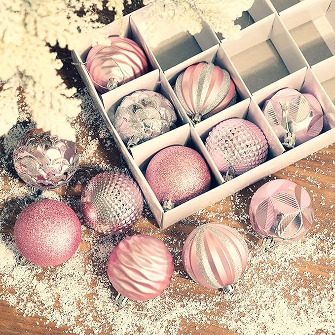 クリスマス オーナメン クリスマスボール 直径6cm 豪華 12個 飾りセット可愛い おしゃれ キラキラ ボール飾り ツリー飾り 北欧風 新年 イベント パーティー 家庭飾り用 雰囲気 クリスマスツリー飾り 部屋 店舗 クリスマスデコレーション (ピンク)