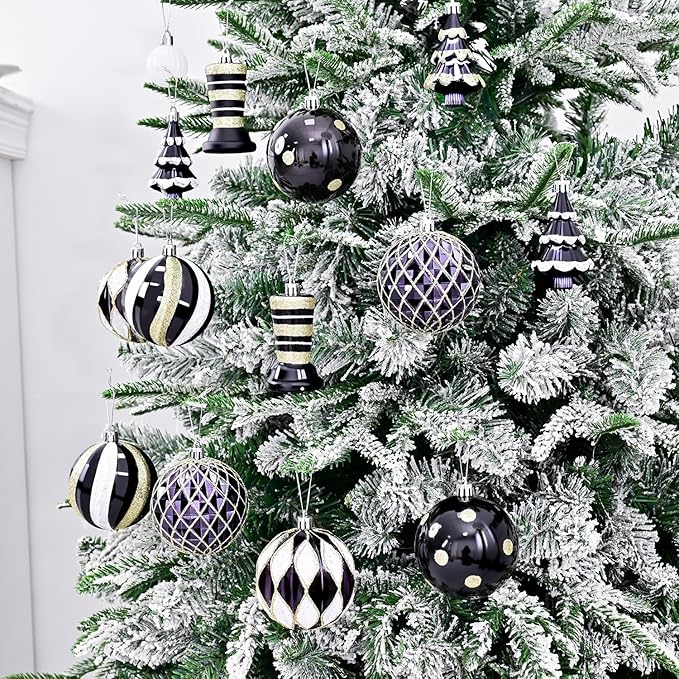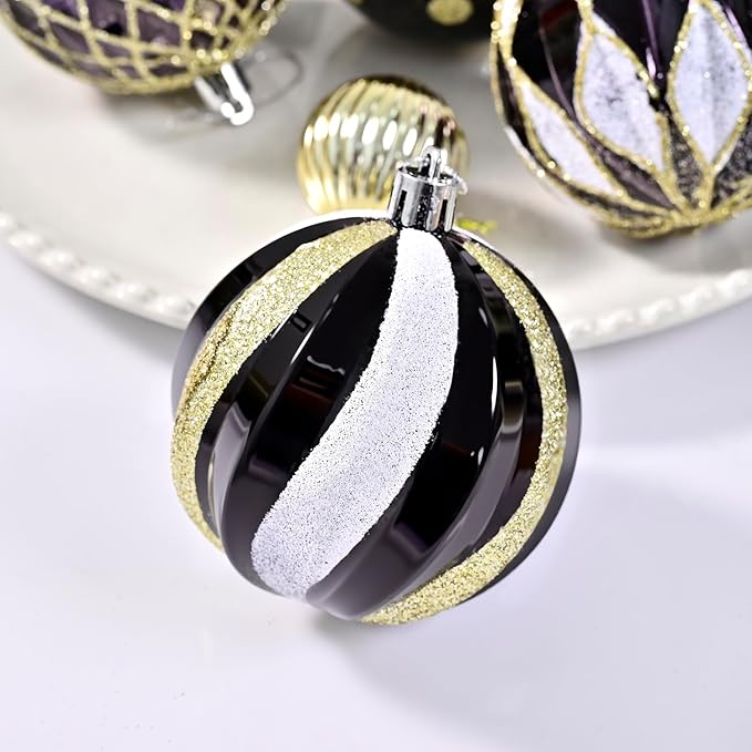 クリスマス ボール オーナメント セット SVNVIOZ 北欧風 8㎝ ゴールド ブラック ホワイト ボール クリスマスツリー 飾り 豪華 多種類 おしゃれ デコレーション