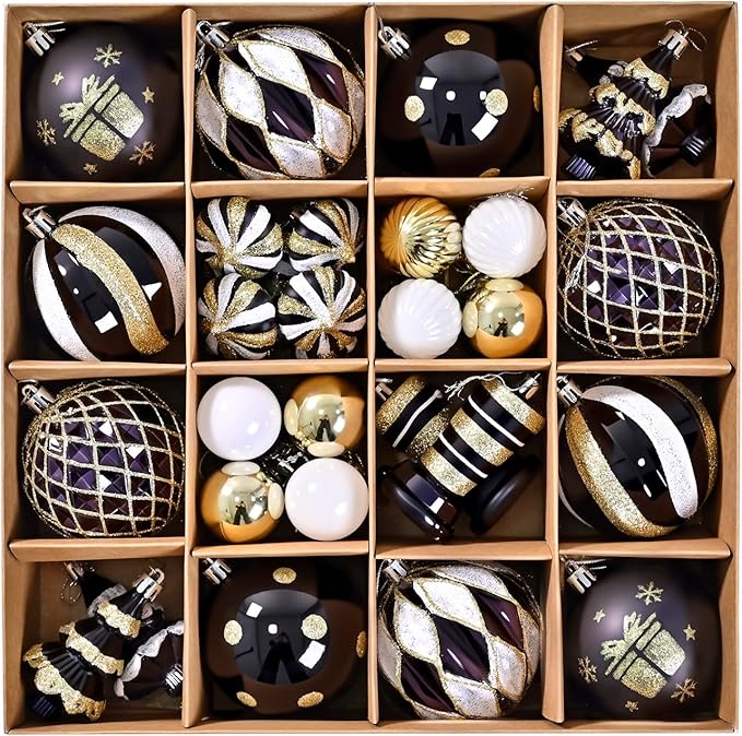 ★ 【製品仕様】セット内容:クリスマスオーナメント40pcs入り、サイズ:4㎝~8cm、カラー:ブラックとゴールドとホワイト、材質:プラスチック。