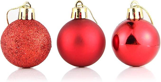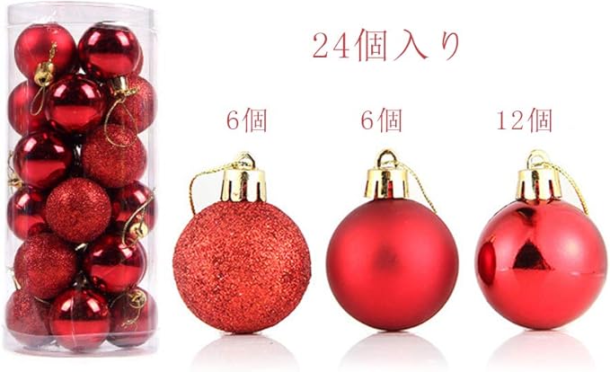 クリスマス ボール 24個 セット 【全11色】 クリスマスツリー デコレーションボール オーナメント ゴールド シルバー クリスマス 飾りディスプレイ 球形 吊るす 大粒でツリーに映えるオーナメント 凍える装飾 お洒落 かわいい christmas Xmas (レッド, 4cm)