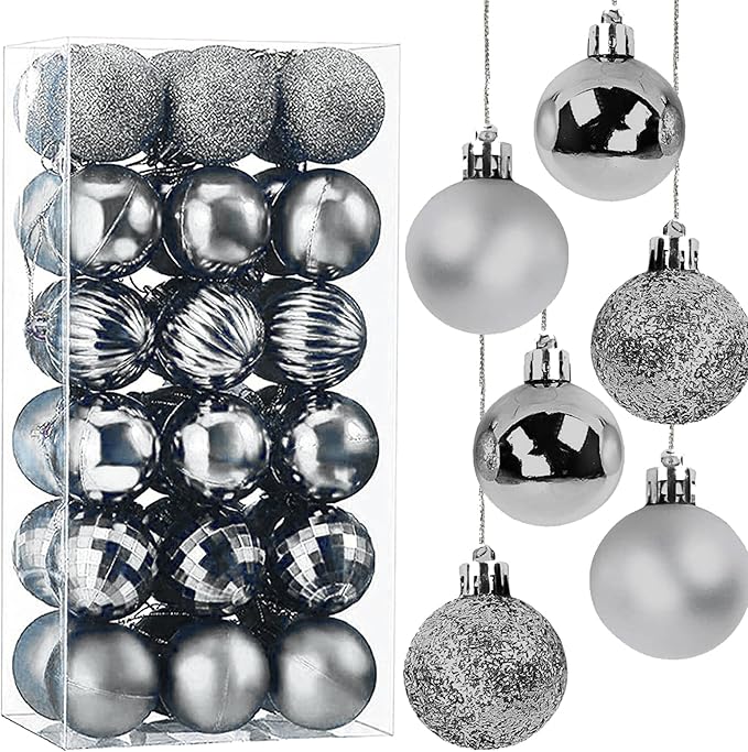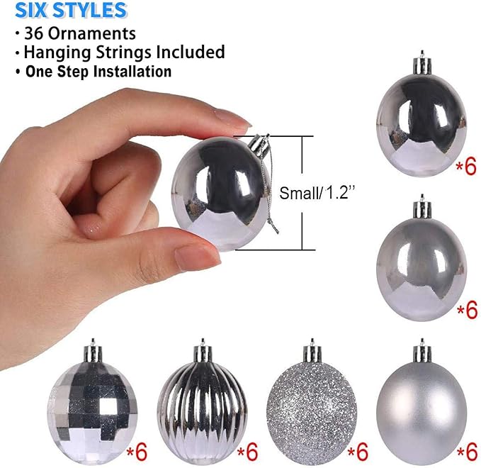 Taeku クリスマス オーナメント, 36個入り ボールクリスマス ツリー 飾りフック付き DIY クリスマスツリー 雰囲気が 装飾 部屋 喫茶店 店舗デコレーション 新年 家庭用 直径4cm (シルバー)