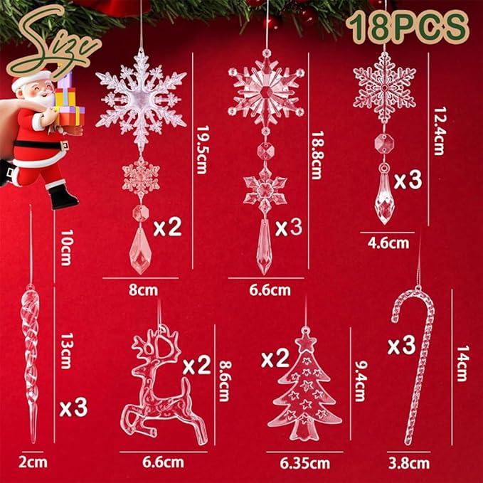 クリスマスツリー オーナメントセット クリスマスツリー飾り クリスタル 雪の結晶 氷柱 エルク 18枚セット クリスマス ドロップ クリスマスツリー 飾り吊り下げ クリスマスオーナメント 店舗装飾 部屋飾り 透明装飾 クリスマスパーティー飾り 糸付き