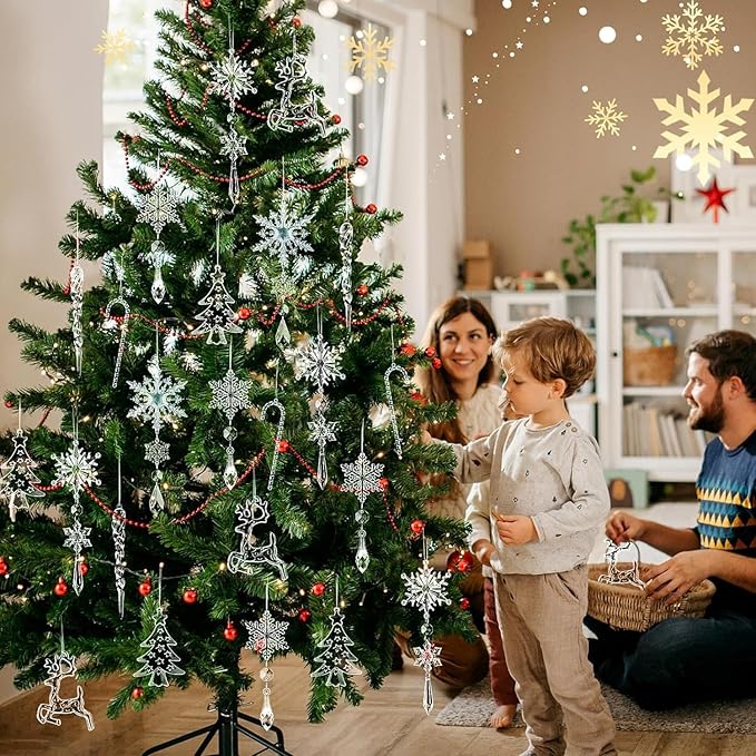 素材:クリスマスツリーオーナメントはアクリル素材を採用し 、繰り返して使用可能です。本物のクリスタルのように見えたおしゃれな飾りで、お祝いの雰囲気が簡単にでできます。
