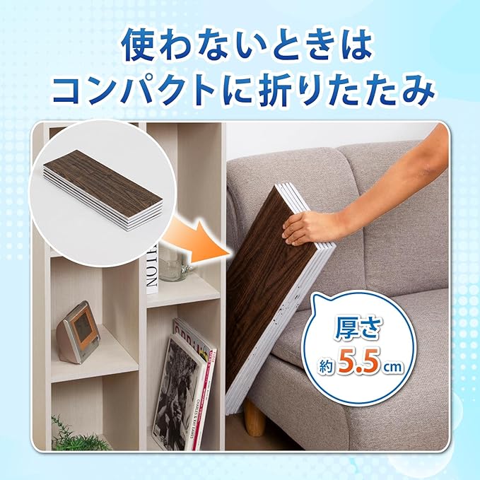 ●自立するのでどこにでも設置できる。使わないときは折りたたんで片付けられる。