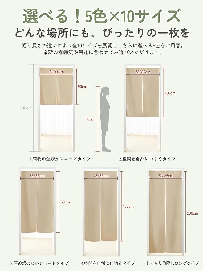 クモリ(Kumori) 遮光 のれん 遮光度99.99% 間仕切りカーテン 暖簾 断熱 無地 厚手 保温 防寒 防音 省エネ 洗濯可能 目隠し ドアカーテン 玄関 キッチン リビング 出入り口 障子 和風 飲食店 (幅72cm 丈90cm・1枚組 ベージュ)