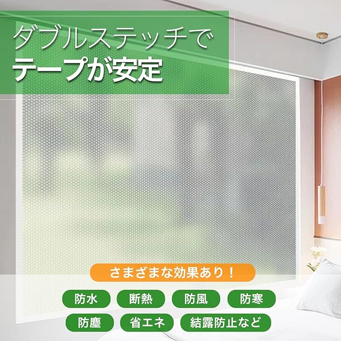 窓用フィルムは、防寒、防風、防塵、保温、断熱対策用の便利グッズ。目隠し、防音PVC製で掃除やお手入れも簡単。繰り返し使えエコに配慮したSDGs、サステナブル商品。カーテンと併用すれば、防音、保温、防寒、断熱効果もUP。