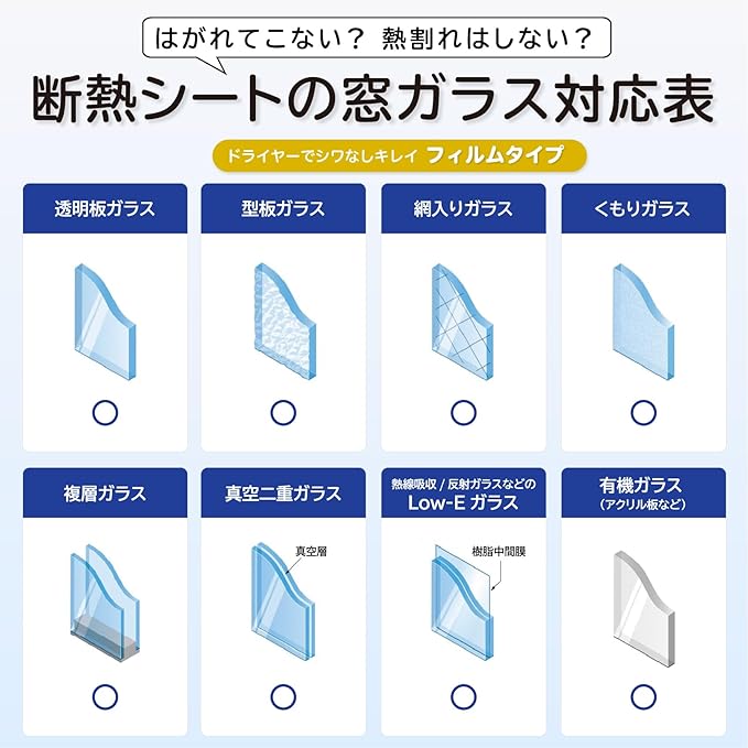 ・超透明フィルムでドライヤーでシワなしキレイ!網入りガラスや有機ガラスも対応。超透明だから室内が暗くならない!
