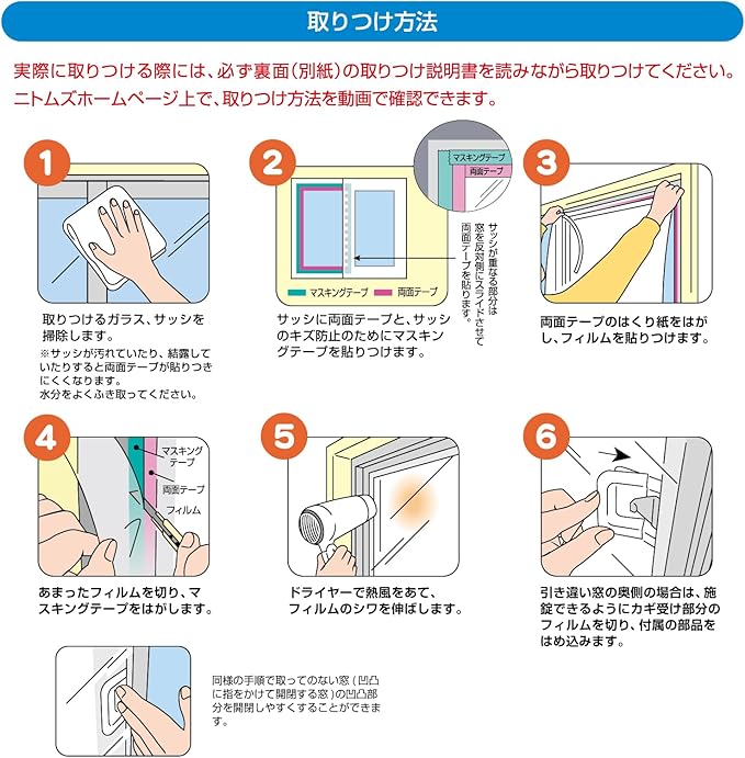 ●※サッシ枠に両面テープ・マスキングテープを貼るスペース(約3cm)のない窓ガラスには取り付けられない