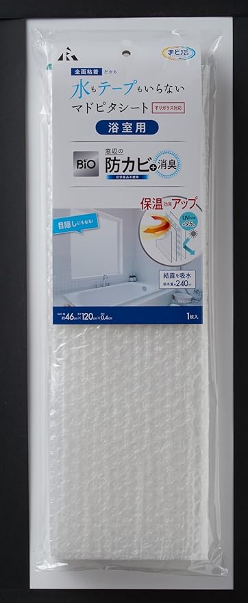 アール(R) バイオマドピタシートすりガラス浴室用 断熱シート まど活 浴室用 46 120(cm) 浴室 災害 粘着加工 紫外線約95%カット H-353