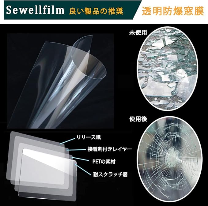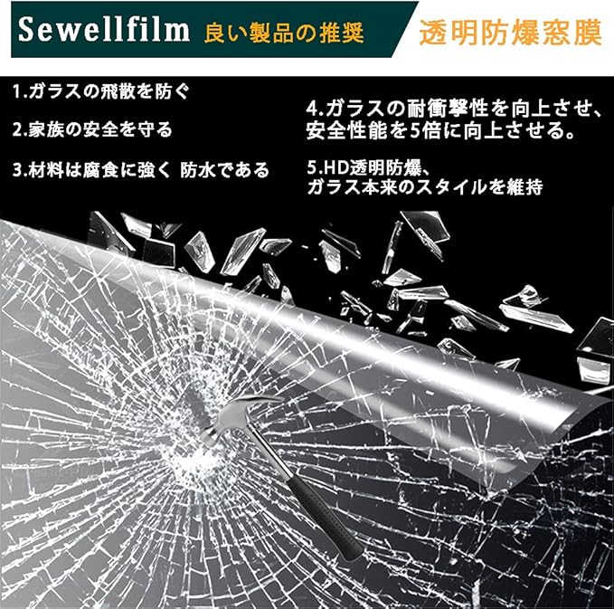 【透明度が高い】多くの膜は色があり、視線を遮ることができ、ガラスのデザイン本来のスタイルを変えることができます。この透明破砕防止フィルムは、従来の設計を乱すことなく、保護機能も提供しています。