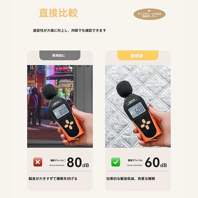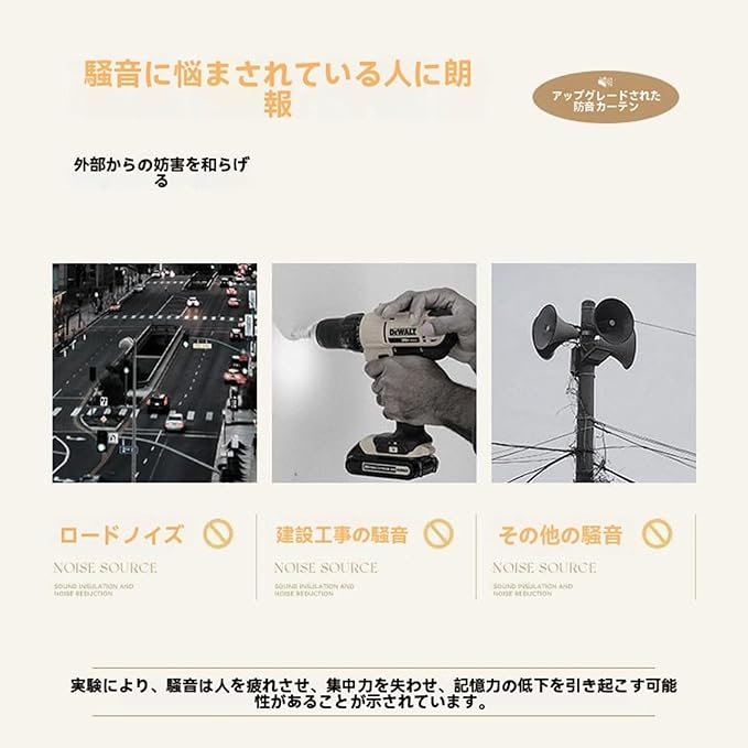 【遮音効果が強い】:騒音を効果的に軽減する設計で、室内の静寂を守りながら快適な空間を提供します。部屋内外の音漏れや外部からの騒音を大幅に低減します。