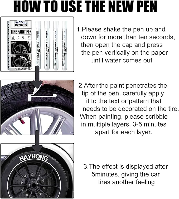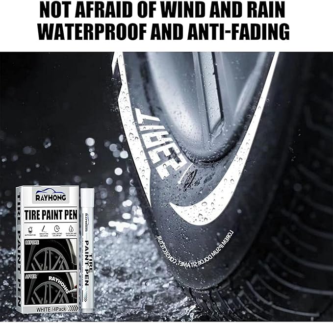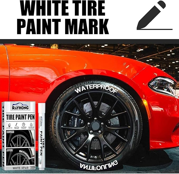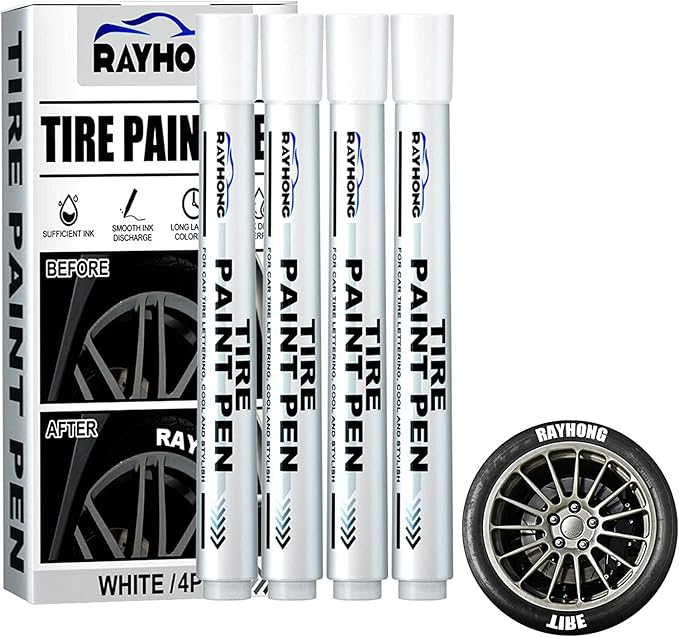 タイヤペイントマーカーペン、アートマーカー、4本タイヤマーカー 白 マーカーペン、ホワイトレタータイヤ ペン、ホワイトマーカーペン、ホワイト タイヤ マーカー 車のタイヤ、ゴム、金属、水性インク、車の装飾用