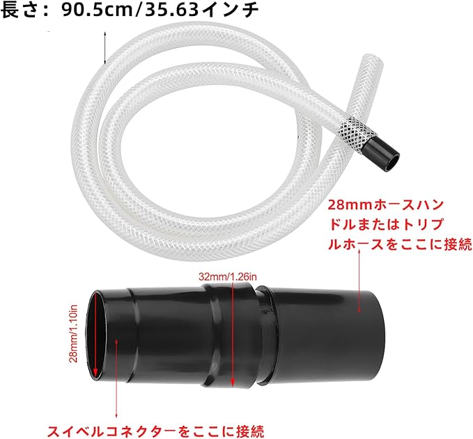 【90.5cmのバキュームホース】このユニバーサル・フーバー・アクセサリー9点セットは使いやすく、バキュームホースの長さが90.5cmあるので、細部まで楽に届き、便利です。