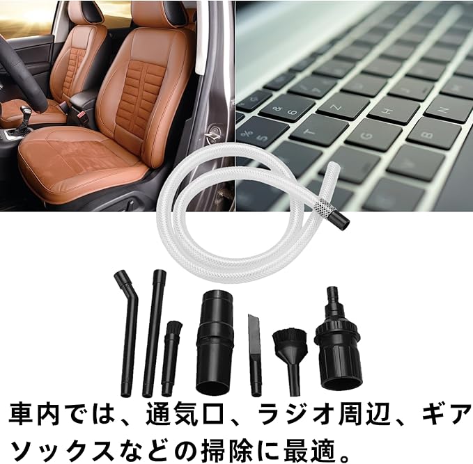 【車の掃除】普通の掃除機では届かないような場所にも届きます。 車内では、通気口、ラジオ周辺、ギアソックスなどの掃除に最適。