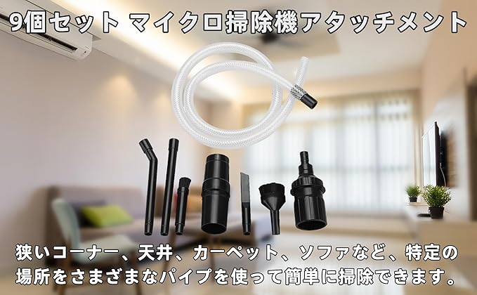 9個セット マイクロ掃除機アタッチメント ミニマイクロツール 車用クリーニングキット ユニバーサル 掃除機アタッチメント 液体クリーナーなし コンピューター/作業場/家庭/車の掃除 交換用
