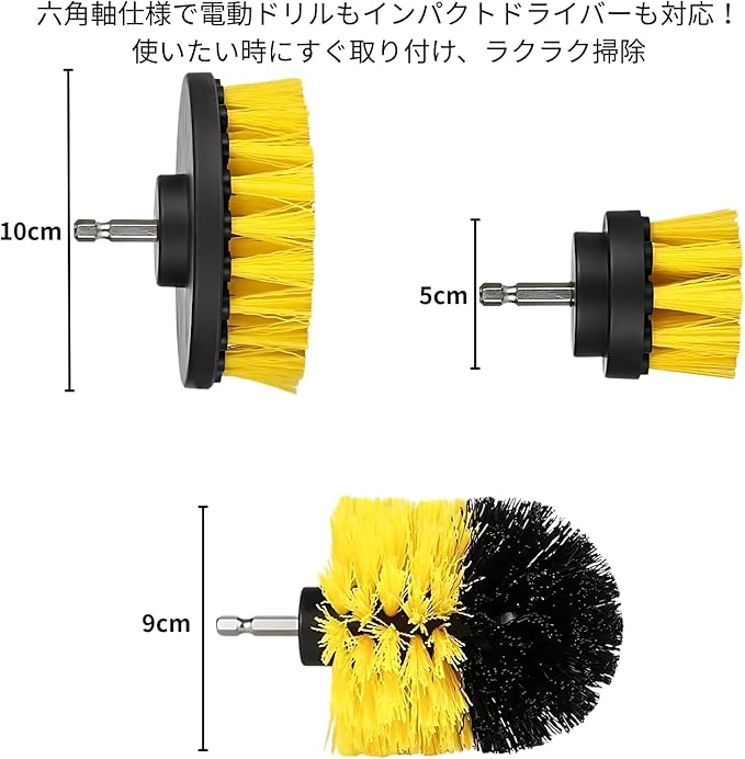 MagZen 電動掃除用ブラシ 3点セット 電動ドリル/インパクトドライバー対応 六角軸ブラシアタッチメント 浴室・キッチン・車・タイル・トイレの掃除に最適