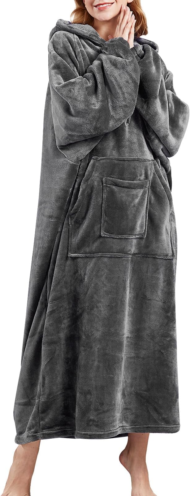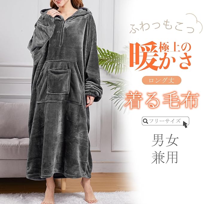 [Sumolux] 着る毛布 レディース メンズ 男女兼用 暖かい ルームウェア フード付き 大きいサイズ ポケット付き 着るブランケット ナイトガウン パジャマ 部屋着 フランネル ふわふわ ゆったり 冷え対策