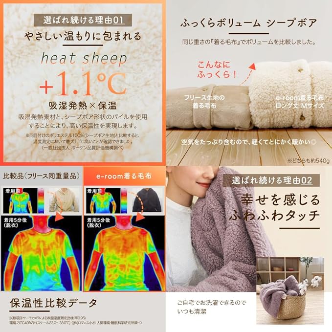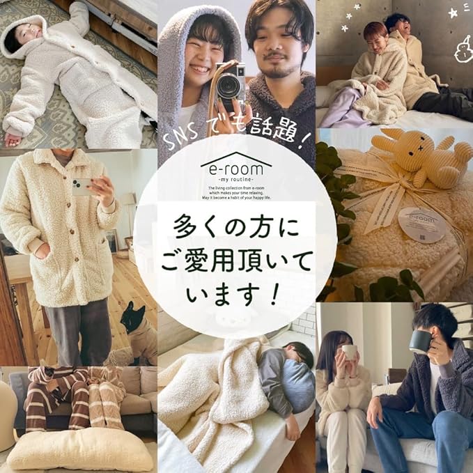 [e-room] 着る毛布 ロング丈 メンズ 大きいサイズ レディース 可愛い 足まで 厚手 ふわふわ 寝られる ゲーミング 袖ゴム 着るブランケット 吸湿発熱
