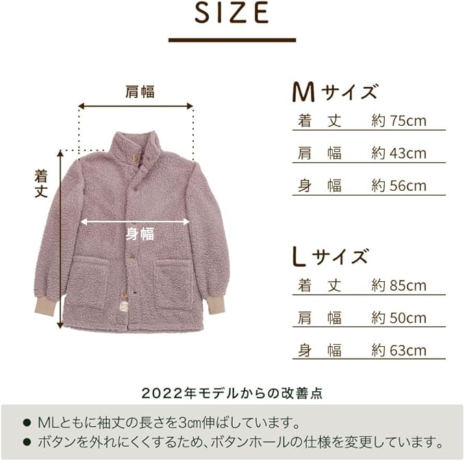 ショート丈サイズ:(M)着丈約75cm・身幅約56cm (L)着丈約85cm・身幅63cm