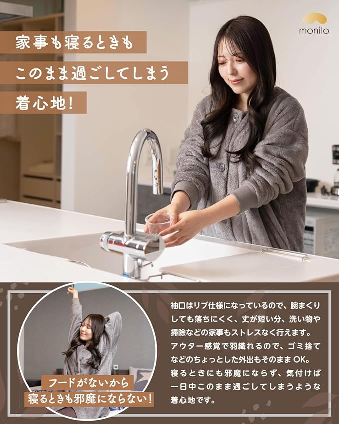 [monilo] 着る毛布 レディース ショート丈 おうち時間に+1枚 軽くて動きやすい リブ袖 フードなし
