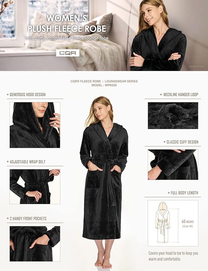 暖かく着心地の良いレディースフーディーナイトガウン パジャマローブ