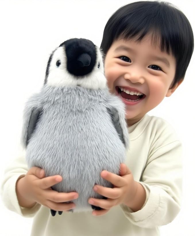 愛らしくリアルなデザイン - 柔らかく高品質な素材、表情豊かな瞳、ふわふわの体で、抱きしめたくなるようなリアルな感触のかわいい赤ちゃんペンギン。