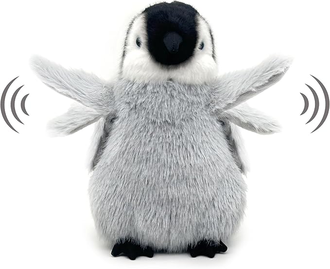羽ばたくペンギンぬいぐるみ 25cm (お腹を握ると動きます) 本物そっくりのインタラクティブ玩具 (子供用)