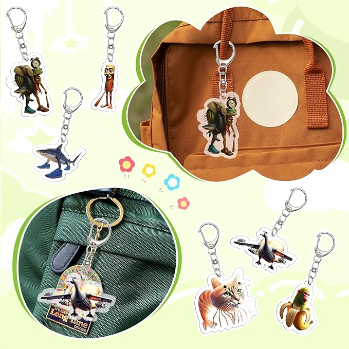 [Fantasyon] トゥントゥントゥンサフール キーホルダー ターボババア ネットミーム イタリアンブレインロット トララレロ・トラララ バッグ 鍵 アクリルキーホルダー ペンダント かわいい 装飾 6枚セット バッグ飾り カバン掛け コスプレ小物 おしゃれ 誕生日プレゼント 非公式